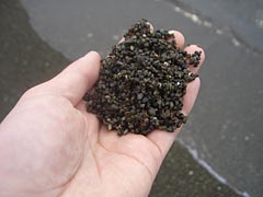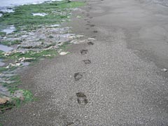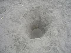 | 砂と言うよりジャリ。かわいい。 | 穴。私が掘ったのではない。 |