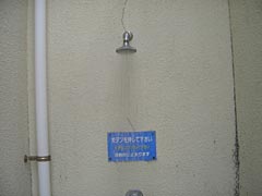 | トイレ。水洗。 | 「ボタンを押してください」とあるので押したら水がでた。びっくり。 |