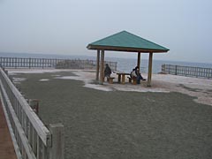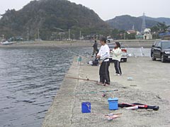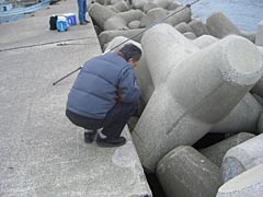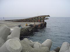 | 海岸には家族しかいませんでした。 | 防波堤で釣りしている人達もいる。 |