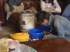 そんな感じで二時間ほど潮干狩りを堪能し、みんなでバケツ3杯分のアサリを捕獲。久しぶりに太陽と海と砂浜に頭の中に溜まっていた余計なものが放電しきった感じだ。頭も胃袋も空っぽだ。さあ、たっぷり放電した分、アサリを食べて充電しようということで、N谷さんという人が管理人をやっているアパートへ。電車はみんなで乗ると間違えなくて便利だ。