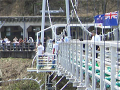 目的地にどんよりとした気分で到着。とてもいい笑顔の某自衛官に「予約してありますから。さあさあさあ。」と進められた先には、学生時代見ないようにしていた吊り橋があり、その真ん中からは人間ヨーヨーがブランブランとぶら下がっている。ああ、やっぱりバンジージャンプですか。ええ、そうだとは思っていました。じゃあ、がんばります。