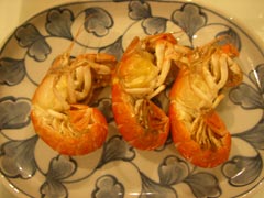あれ、でもなんかちょっと普通のシャコと違うような気がする。おっちゃんに「このシャコはなに?」と目で訴えると、「アナジャコ」との答え。どうやらお寿司とかに出てくるシャコとはちょっと違う種類らしい。塩焼き、塩茹でなどで食べると美味しいそうだ。しかも殻がやわらかいので殻ごと食えるらしい。それは素晴らしい。もっとがんばろう。