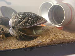 ついでに、干潟で拾って来てしまった怪しい真っ黒な貝を、干椎茸の戻し汁を使ってみそ汁にしてみた。干潟汁と呼んでくれたまえ。ええと、汁は貝と椎茸のダシが合わさってすこぶる美味い。が、貝の身は干潟の砂がたっぷりと詰まっているので危険危険。むかつくので家主がかわいがっている先週釣ってきたハゼの住む水槽に殻を捨ててやれ。えい。