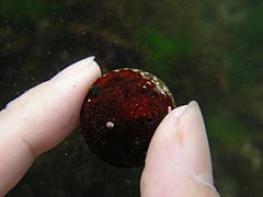 | 色とりどりの海藻。 | シッタカという貝。貝類は捕ると密猟。 |