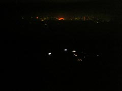 | 夜景。中央部分の光はヘッドライト。 |