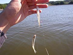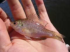 | 目がでかい。 | ブルーギルも結構釣れちゃう。食用にキープ。 |