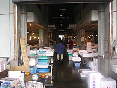 友人の運転する車で10時半過ぎに市場の正門(東側にある)から入り、門番のおっちゃんに「魚!魚!」と訴えてゲートイン。駐車場に車を止めてお魚コーナーにいくと、たくさんの魚屋さんが店頭に魚を並べていてパーラダイス。とはいっても来る時間が遅かったらしく、ほとんどの魚は売り切れており、すでに店じまいしているところもあった。次はもっと早くこなくては。とりあえず1キロ1600円のカンパチ一匹(1.2キロあった)と、1キロ1,800円とカンパチよりも高い金色に輝くアジ4匹を購入。ついでに一袋200円のわかさぎも。わざわざ市場に来たのに、買った魚がどれも釣ったことのある魚なのはなんでだろう。