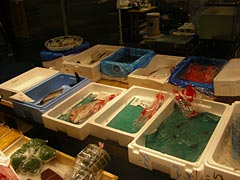 魚の品質は値段相応みたいで、私たちが買ったアジは千葉の釣りものだそうだ。活アワビ1キロ1,800円というのもあって買いそうになったが、よく見たら18,000円だった。あぶないあぶない。ここのお魚屋さんは、どうみても観光客な私たちに対しても、やさしく対応してくれたのがよかった。まあいった時間が空いている時間で、私たちが魚を買う気満々だったからだろうけれど。
