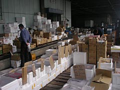 だいぶ前からその存在だけは知っていたが、未だに足を踏み入れたことのなかった場所、その名も船橋中央卸売市場。あれ、正確には船橋市中央卸売市場か。まあどっちでもいいや。新鮮な魚はなるべく自分で捕まえてくるようにしているのだが、今週末は釣りに行くのに躊躇するような天気だったので、船橋近辺在住の友人達とちょっくら行ってみた。お店の人に舐められないように、朝市で「理髪一番」という男らしい床屋で2ヶ月伸ばしっぱなしにしていた髪の毛をバッサリとやってきたぜ。デジカメ持ち歩いている時点で観光客なのはバレバレなのだが。