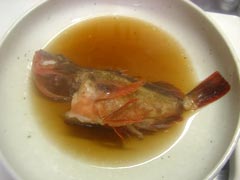 | カサゴのお刺身。写真のピントが合わなかったけれど、味覚のピントはバッチリ合った。うまいぞ。この魚。 | カサゴの煮付け。アッサリと煮てみた。 |