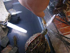 最近ですね、亀本さんという市原の池で釣られて来たという由緒正しき野生種のクサガメさんとの共同生活を始めたのですよ。私は一緒に暮らしていてとっても楽しいのですが、亀本さんはどうやら不服らしく、ハンガーストライキをしておりなにも食べようとしないんです。それがとっても悲しいのです。