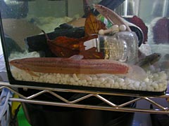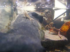 | ノビノビと生活するエビさん達。 | ずいぶんと大きくなったドジョウさん。エビとザリガニを一瞬で食べてしまった。 |