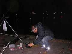 アクシデントにもめげずに竿を出したところで、最近築地で柳刃包丁を買って浮かれている修行僧の人がのほほんと登場。真冬にウナギ釣りにくるなんて奇特な人だなあとちょっと離れて眺めてみる。怖い怖い。