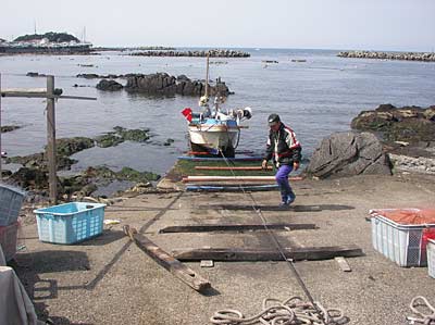 | 刺し網を仕掛けにいったところだから収穫はないよって。 |