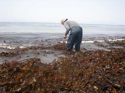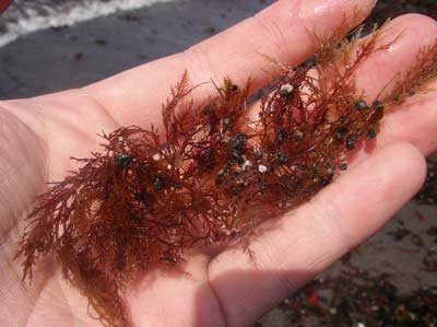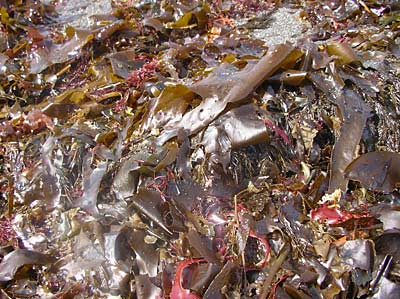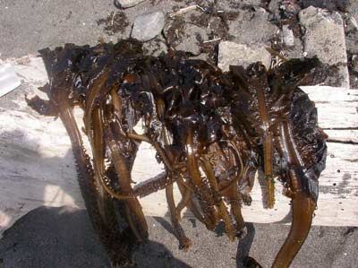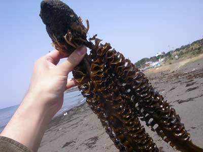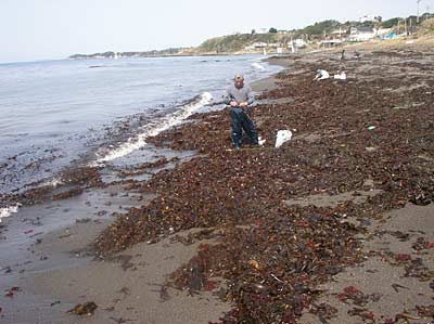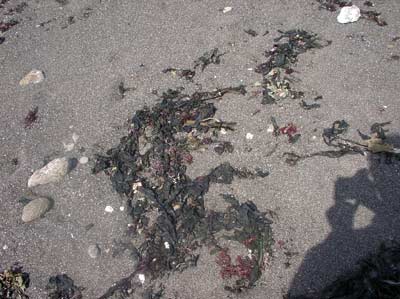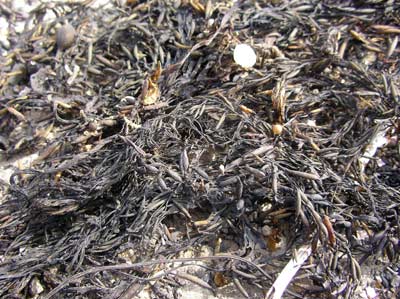 | 海草が打ち上げられている。最近風が強かったからなあ。 |