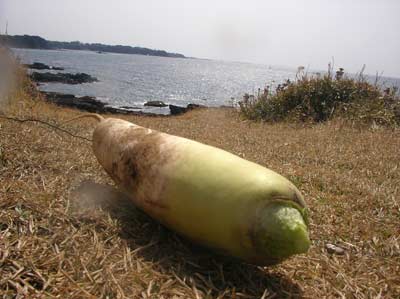 | ところかわって畑の近く。発育不良のあれが捨てられている。 |