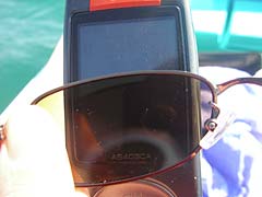 もういい、マゴチ、今日のところはこの辺で勘弁してやるかとアオリイカ狙いで四方八方月亭八方に餌木を投げるも、あいかわらず「すわ、イカか!」というアタリは海藻。もういやん。今日はなにをやってもダメみたいだなあと、ちょっと離れたところで釣っている修行僧の様子を聞こうかなと携帯を開いてびっくり。液晶が真っ暗。何にも写っていない。とうとう壊れたか。ちっとも防水機能の備わっていない携帯電話を釣りに持って行くこと数十回、水をジャブジャブと掛けてしまったこと数回、今まで壊れなかったことの方が不思議なくらいに雑な扱いを受けてきたこの携帯、とうとう天に召されてしまったのね。あ〜、電話番号のバックアップとかは一切取ってないのよね。ええと、どうしようかなあってどうにもならないんだけれどさーっとこういう時の定番リアクション、眼鏡を投げつける(普通は帽子か)っていうのをやろうとして気がついた。どうやら偏光グラスを掛けていると液晶モニタが真っ黒に写るらしい。ふう、本気で焦ったぜいってなに1人でワタワタしているのだ私。