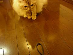 | カメラの紐に興味津々。 | ウナギにも興味津々。 |