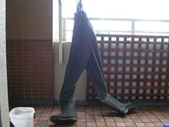 | 8年くらい使い続けているウェーダー故障。 | 応急処置。 |