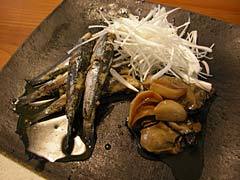 | ウェーダーを干します。芸術的に。 | オイルサーディンと牡蠣のオイスターソース煮。 |