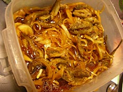 | 大量のハゼ南蛮漬け。 |
