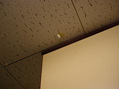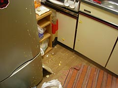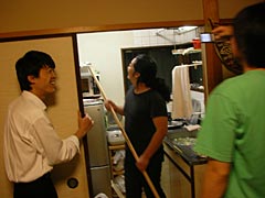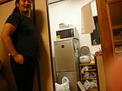 | 地毛ではない。 | 卵を電子レンジに入れてふすまに隠れるNさん。楽しそう。 |