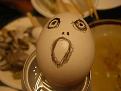 | 残った卵に落書きが。 | 今日と言う一日を表す卵の表情である。 |