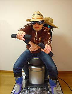 ロデオで下半身を鍛えながら、上半身をマッサージでほぐすという、まさに時間を有効に使った荒業だ!タイムイズマネー、時は金なり、時はタイムなり!あまりに気持ちよくって写真がピンボケしちまったい!