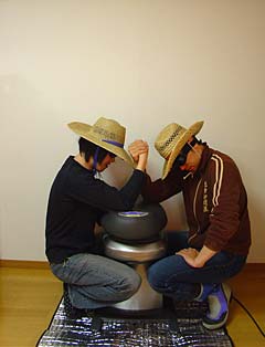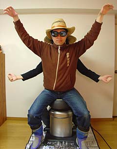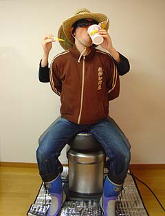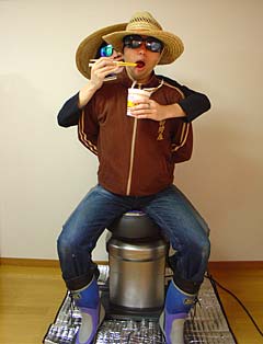 別に正月の隠し芸っていう訳じゃないけれど、たまにはオチャラケて二人羽織なんてのもいいもんだぜ!でも、やるときはカップラーメンみたいなホットメニューは、腕に自信がないよだったらやめておきな!思ったよりも汁が熱いぜ!
