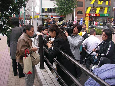 今日はなんとテレビ局の取材まで来ていました。 サイン色紙交換チケットをGETしたおばあちゃんにインタビューです。 |