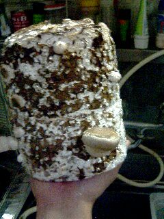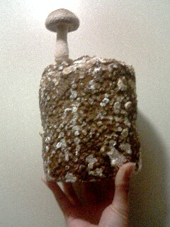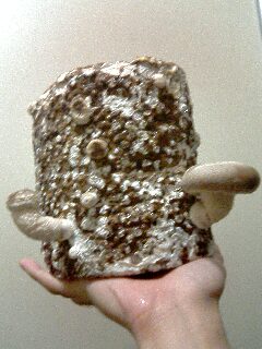 My 椎茸、なんかもう食べ頃サイズ。一日で結構育つな。貝割れ大根みたい。明日食べようかな。でもなんかドジョウと一緒でペット感覚になってきたな。あんまりかわいいのでみんなに言いふらすが、イマイチこの楽しさが伝わらない。