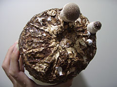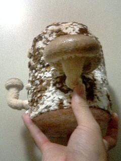 昨日食べ損ねた椎茸、どこまで大きくなったかなと覗いてみると、おお、もう椎茸じゃなくなっている。ところでデジカメが修理から戻ってきた。ばんざい。