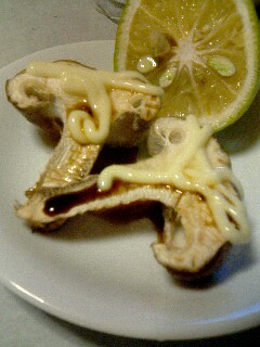 | 今日は下品にマヨネーズつけて焼いてみました。ちょっと生焼け。でもレアの椎茸っていうのもナカナカうまい。 |