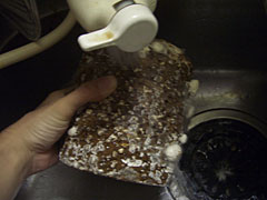結局三本しか収穫できていない椎茸の原木。木じゃないけど。一緒に入っていた説明書によると、水を入れたバケツに12時間突っ込んでおくと、また芽が出るらしい。便利な世の中だね。一緒にお風呂入ればいいのかな。
